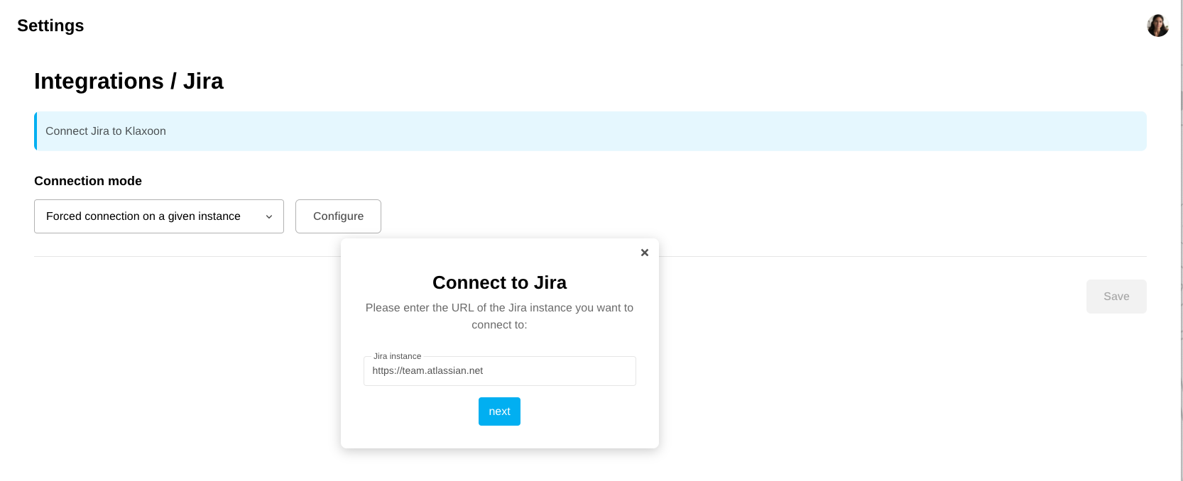 With the “Jira” option (Administration > Settings > Integrations > Jira), the administrator can choose to force the connection on a Jira instance.