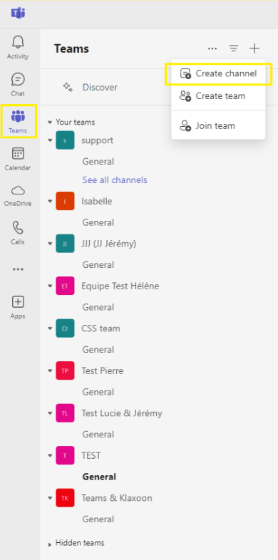 To do this, from the "Team" icon on Teams, click on the "" to create a channel