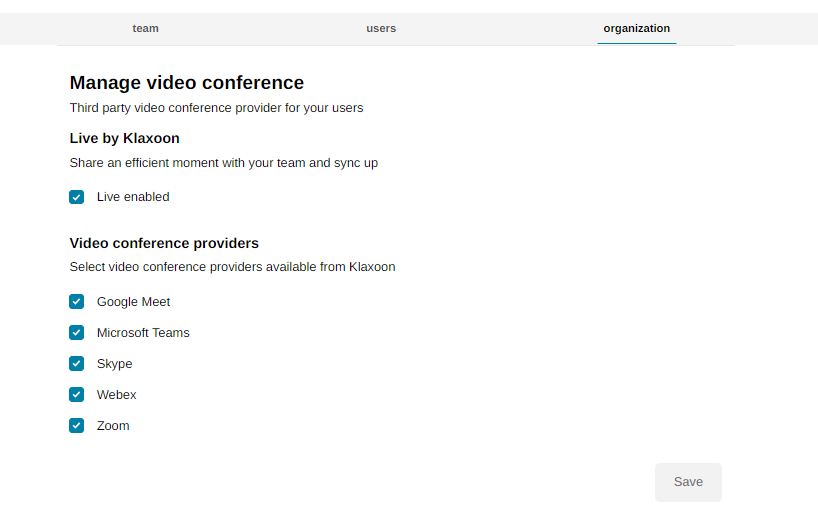 Log into Klaxoon as an admin and go to Manage my Team and select the organization tab.