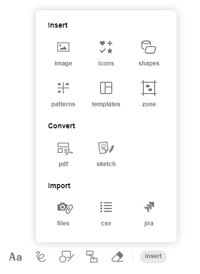 To create a zone, simply go to the "insert" menu and click on "zone". The size of the zone is then adapted directly to the zoom level of your Board.