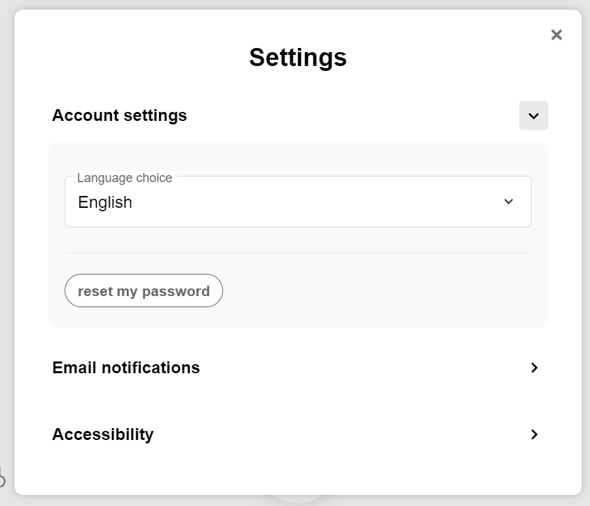 You can choose your language and reset your password. For some free accounts, you can also delete your account. A change of language now takes immediate effect after a simple page refresh.
