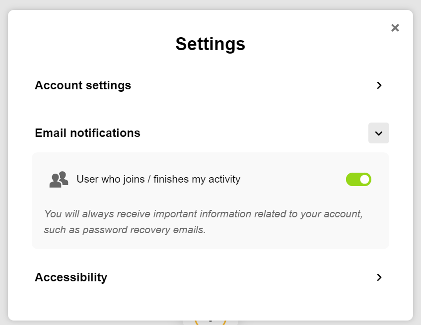 You can now restrict the receipt of e-mails relating to your activities, either when a user joins or finishes one of them. This gives you more control over your e-mail flow, especially when sharing an activity with a large number of people. The display of the settings is also evolving for greater accessibility and harmony.