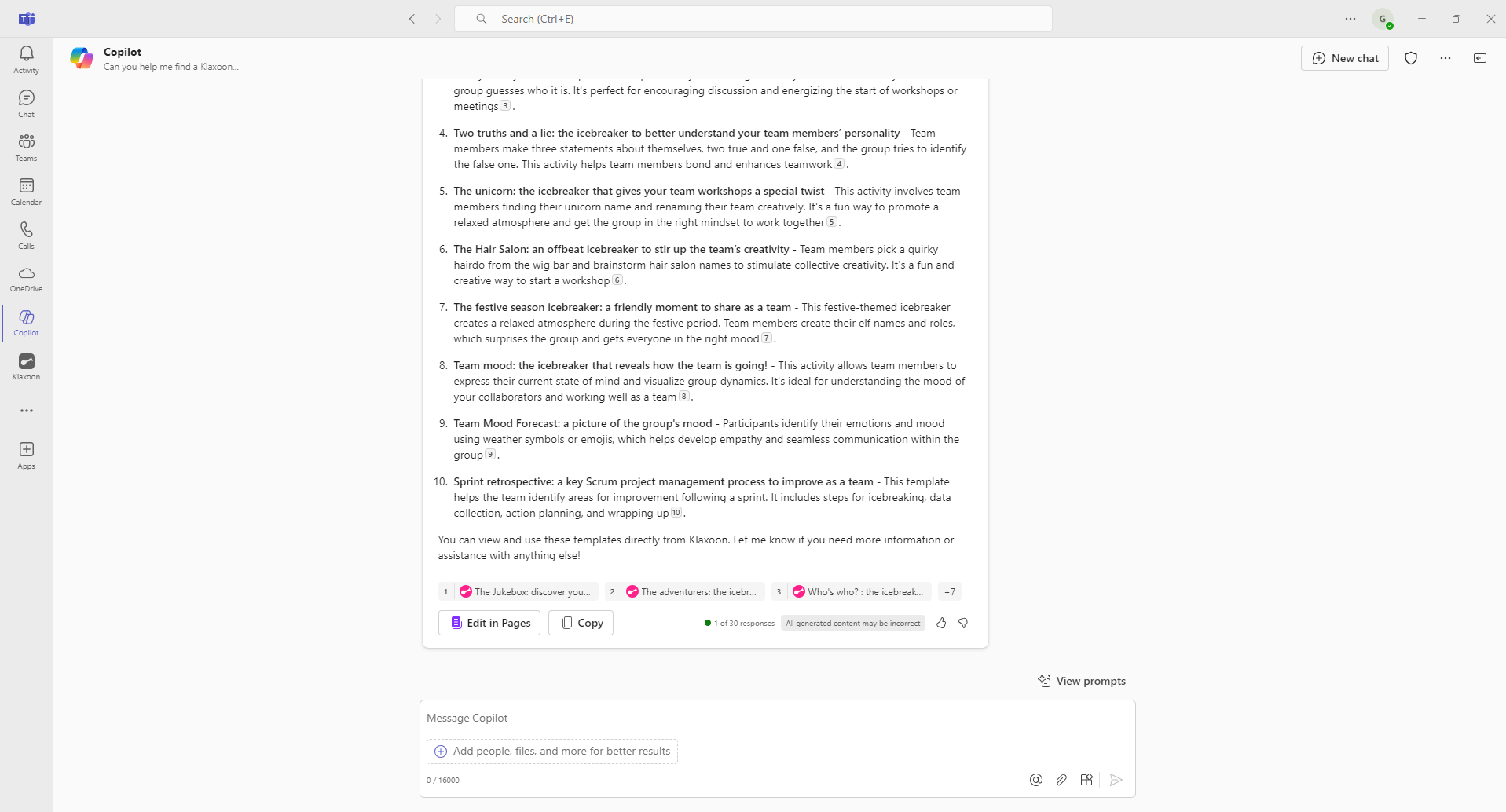With this new integration, you can now search for your activities in an instant. No more time wasted manually searching for a Klaxoon template or activity you've created. All you have to do is ask Copilot to find them for you, making your day easier!
