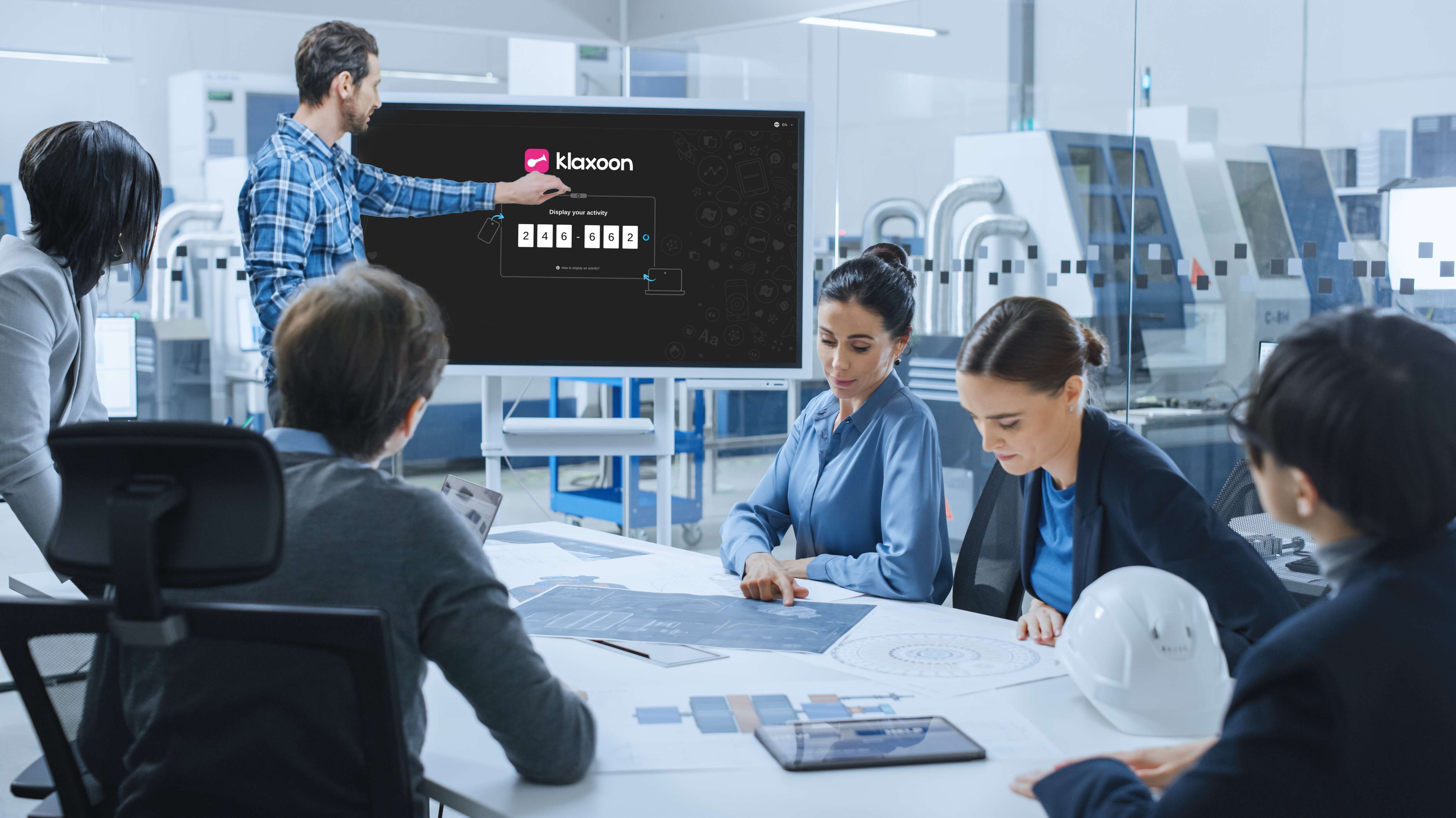 It's now possible to connect to Klaxoon very quickly from an interactive screen! Simply enter in a dedicated insert on your computer or smartphone the code that appears on the screen. It's simple, efficient, and engaging for participants wherever they are. Whether in the office or in a hybrid setting, you give everyone the right conditions to express themselves, and foster collective intelligence.