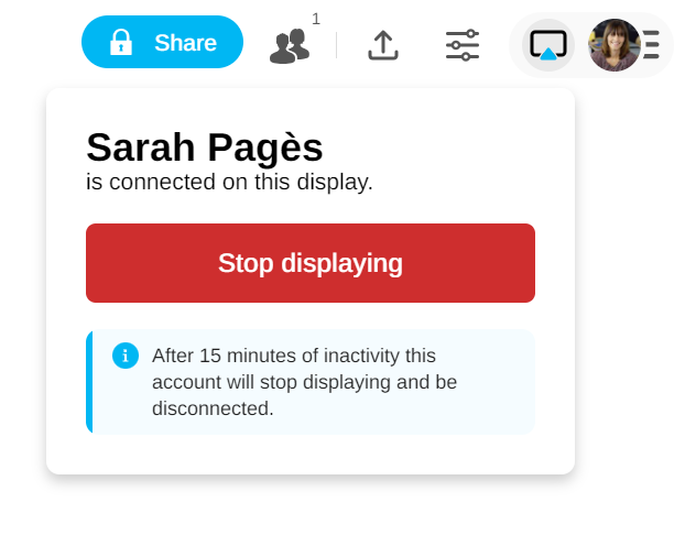 On the screen, an icon allows you to stop the display. After 15 minutes without interaction, the display will automatically stop and your account will be disconnected.