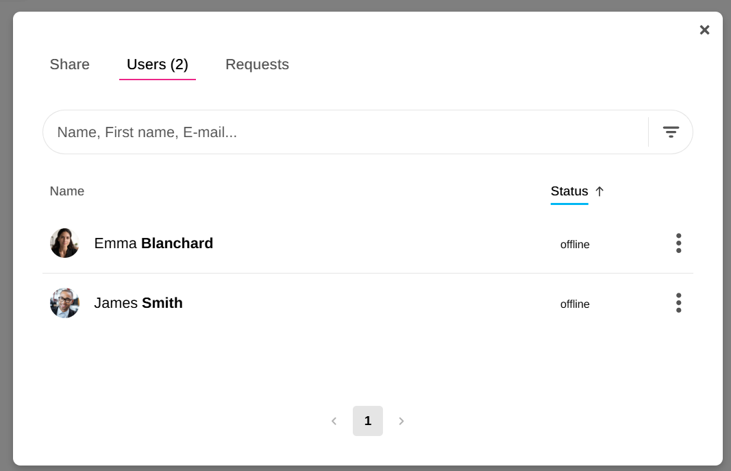 A new indicator is now available in the share window. In the "Users" tab, you can now see which participants are actively viewing or using the template.