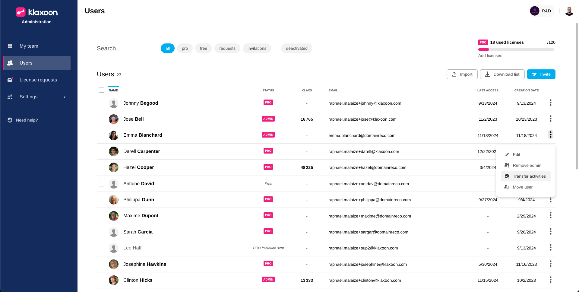 Transfer ownership of an activity from one user to another by the Admin