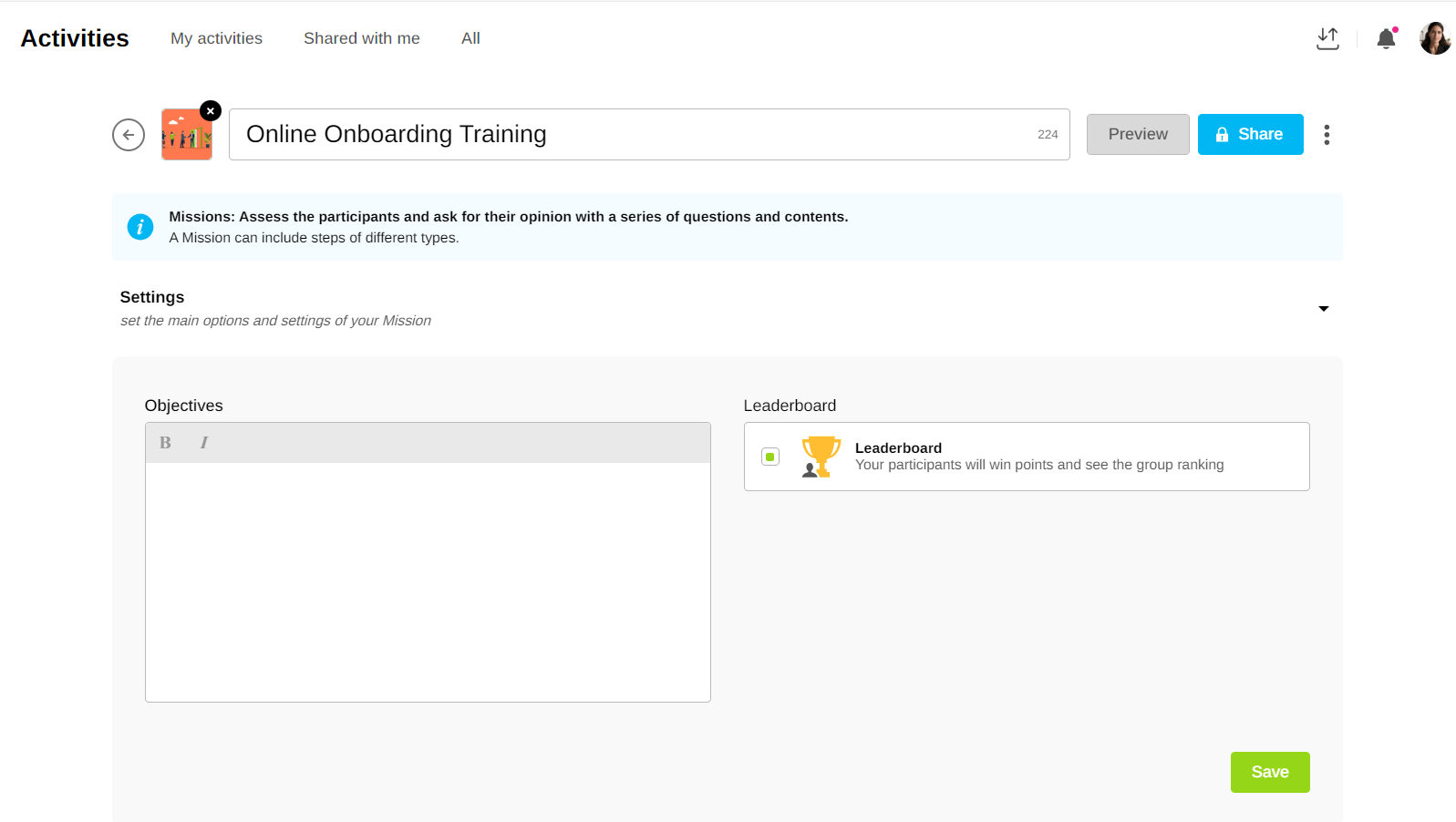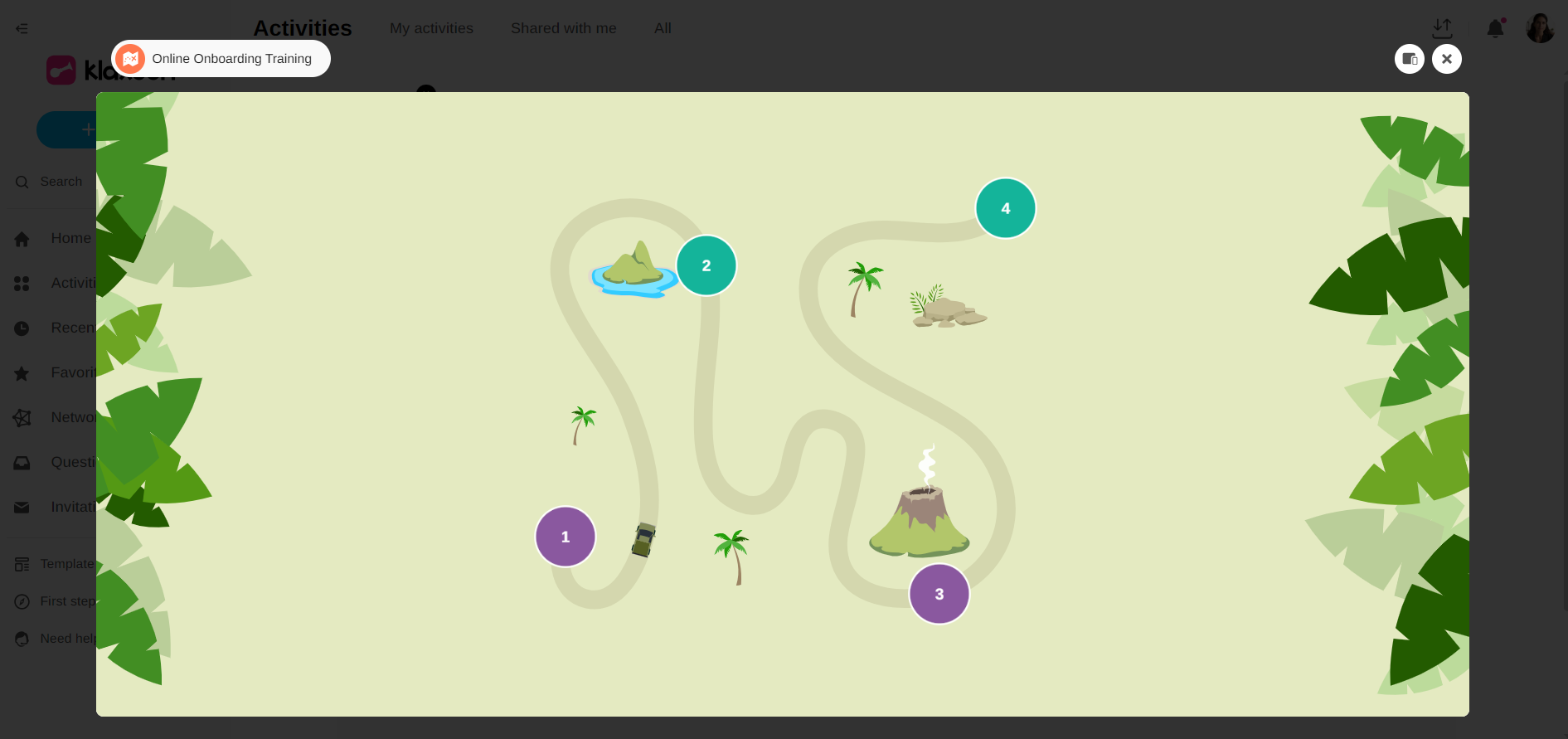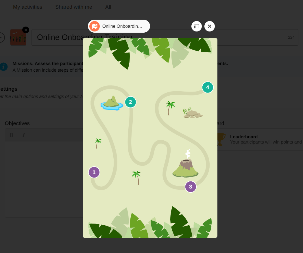 The preview allows you to preview an Activity before you start it. You can see what will appear on the screen of the participants of the Activity.