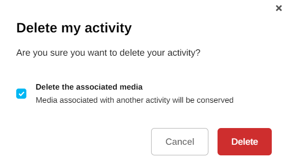If the activity has not been shared and is still being prepared, you will see the ‘Delete’ option directly without needing to close it.