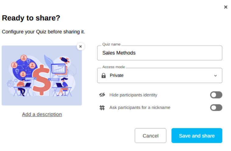 Also select whether you want to mask the identity of your participants or not. E.g : I want to run a Survey and get confidential results, without any names. I then select "Hide the identity of participants" and uncheck the option "Ask participants for a nickname".