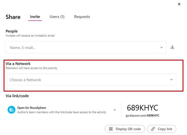 Remark: Only members of the selected Network will have access to the Activity according to the configured rights.
