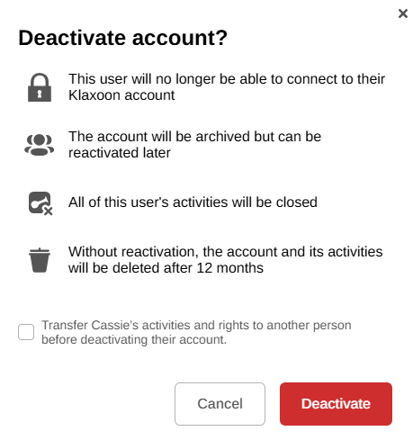 the user will no longer be able to log in to their Klaxoon account