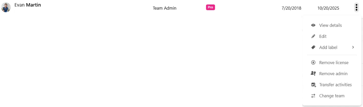 In this article, you will find out the difference between deactivating, removing a user's license or removing from the team.