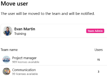 Move a user from one team to another.