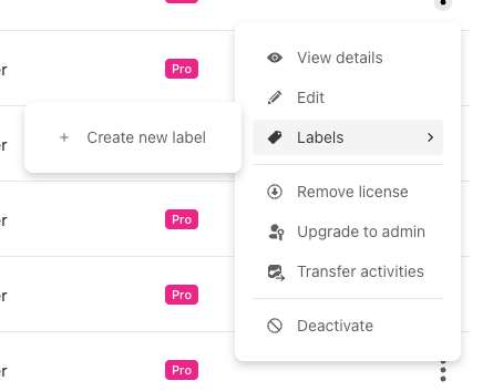 You can then assign your labels to users individually using their 3 dots menu, or via bulk actions (selecting the checkboxes of multiple users) once the labels are created.