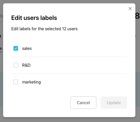 You can then select the labels you want to add to all your users, or unselect those you want to remove.