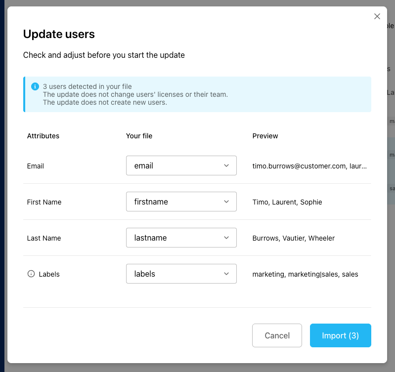 Then select the file that contains your users (you can use an export of your users as a starting point).