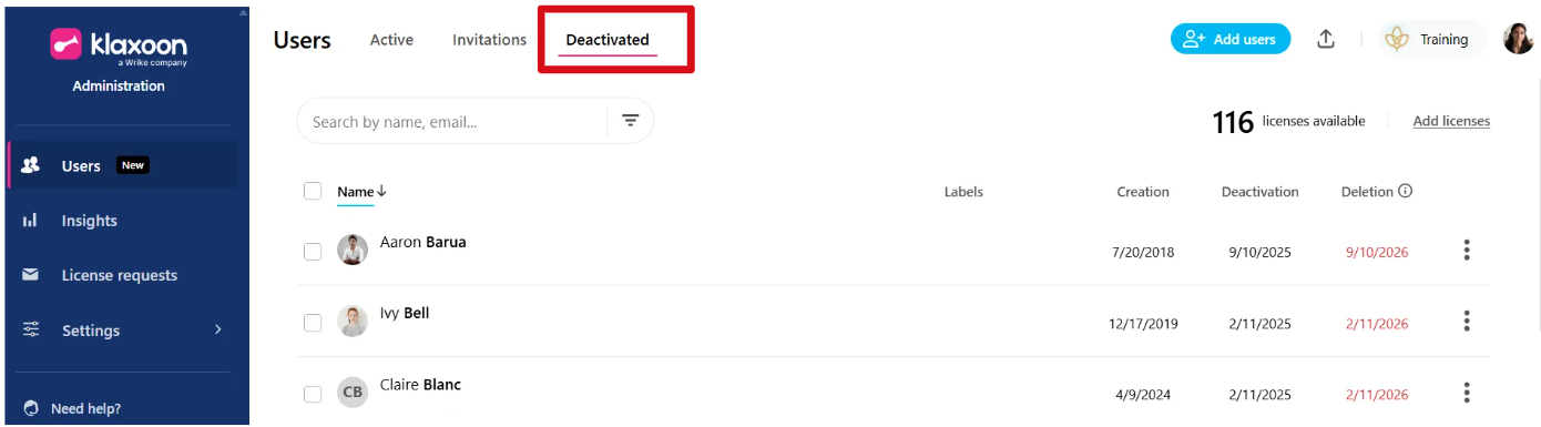 2 - Access to deactivated users