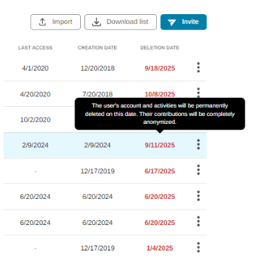 As part of the deletion of inactive accounts (in line with GDRP recommendations), it is planned that users deactivated by a Supervisor will be permanently deleted (email + activities) within 12 months of the deactivation date.