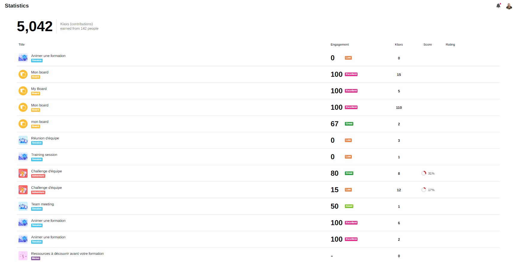 You can use the statistics screen to measure participation in any Klaxoon Activities you have launched.