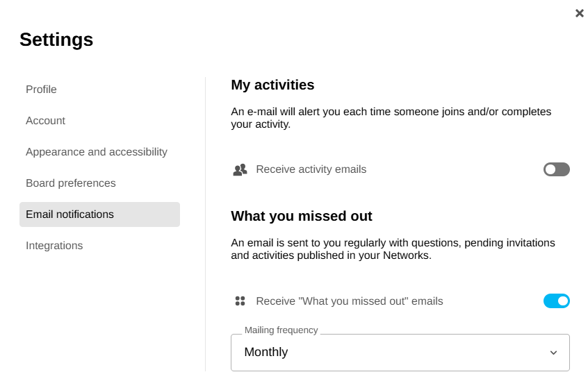 With just a few clicks, you can limit the number of emails you receive about your activities.
