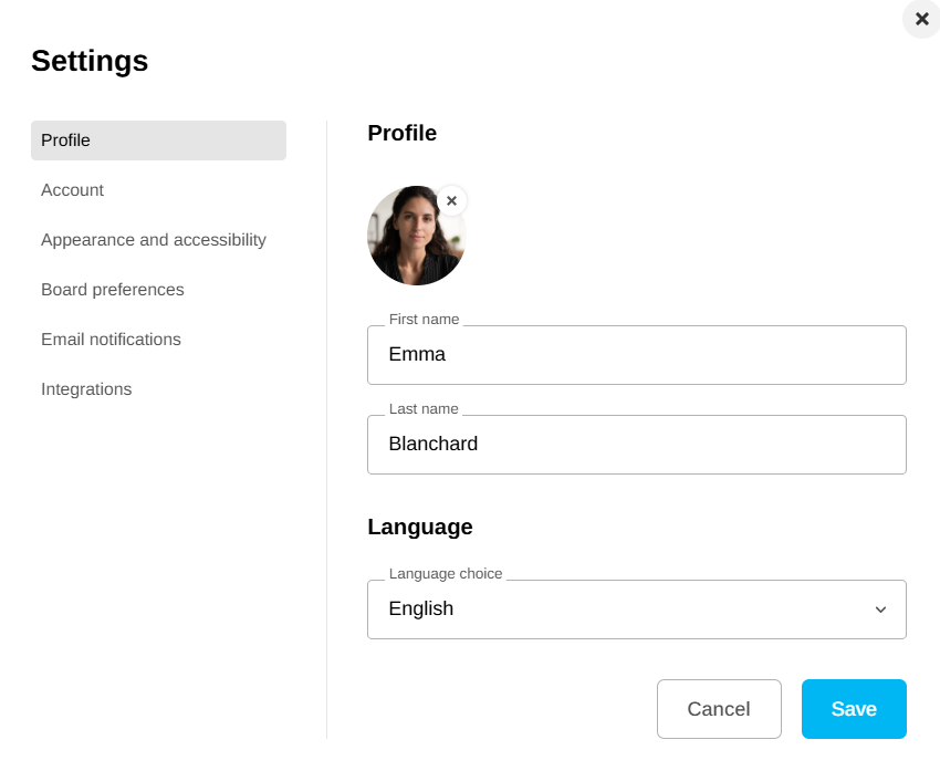 Click on your photo to change or delete it. You can import an image as a JPG, PNG or non-animated GIF.