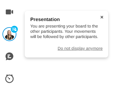 💡 When speaking, everyone takes control with Board synchronization and guides others on the ideas they share, they can move around, zoom in, open media remotely etc.