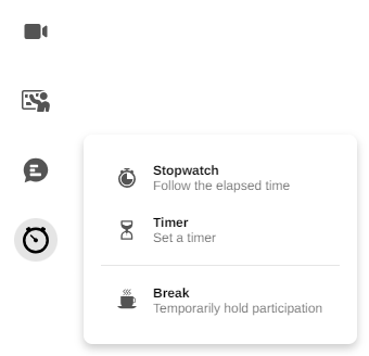 1 - Manage your time with Chrono, Timer or Pause, click on the stopwatch icon