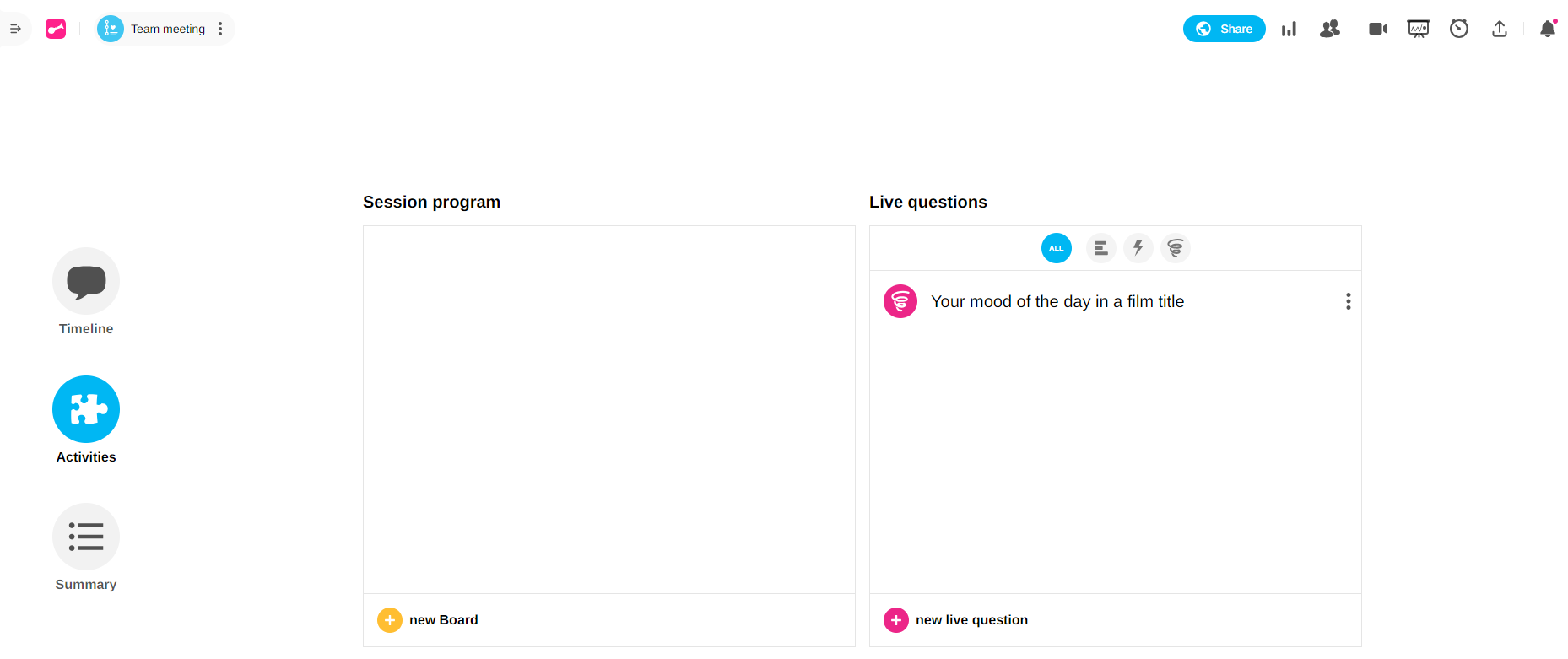 Learn how to share a question on Klaxoon, an interactive method for gathering participants' ideas and perceptions in a visual and dynamic way.