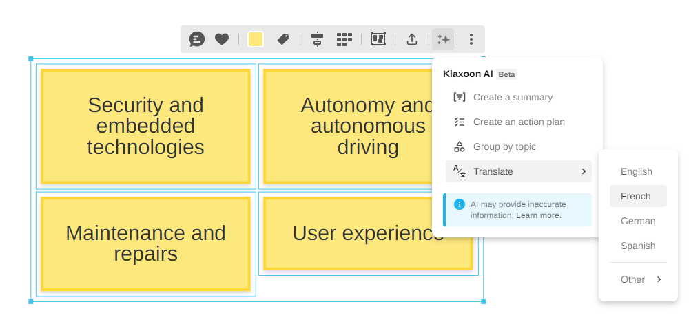 AI automatically translates the text of an idea for all Board