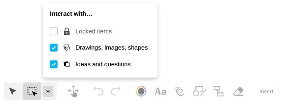 If this setting is made on your side, your participants have to go to the "Interaction Options", the arrow on the bottom left of the Board, to choose "my ideas and ..." to be able to place their ideas on the Board themselves and act on them.