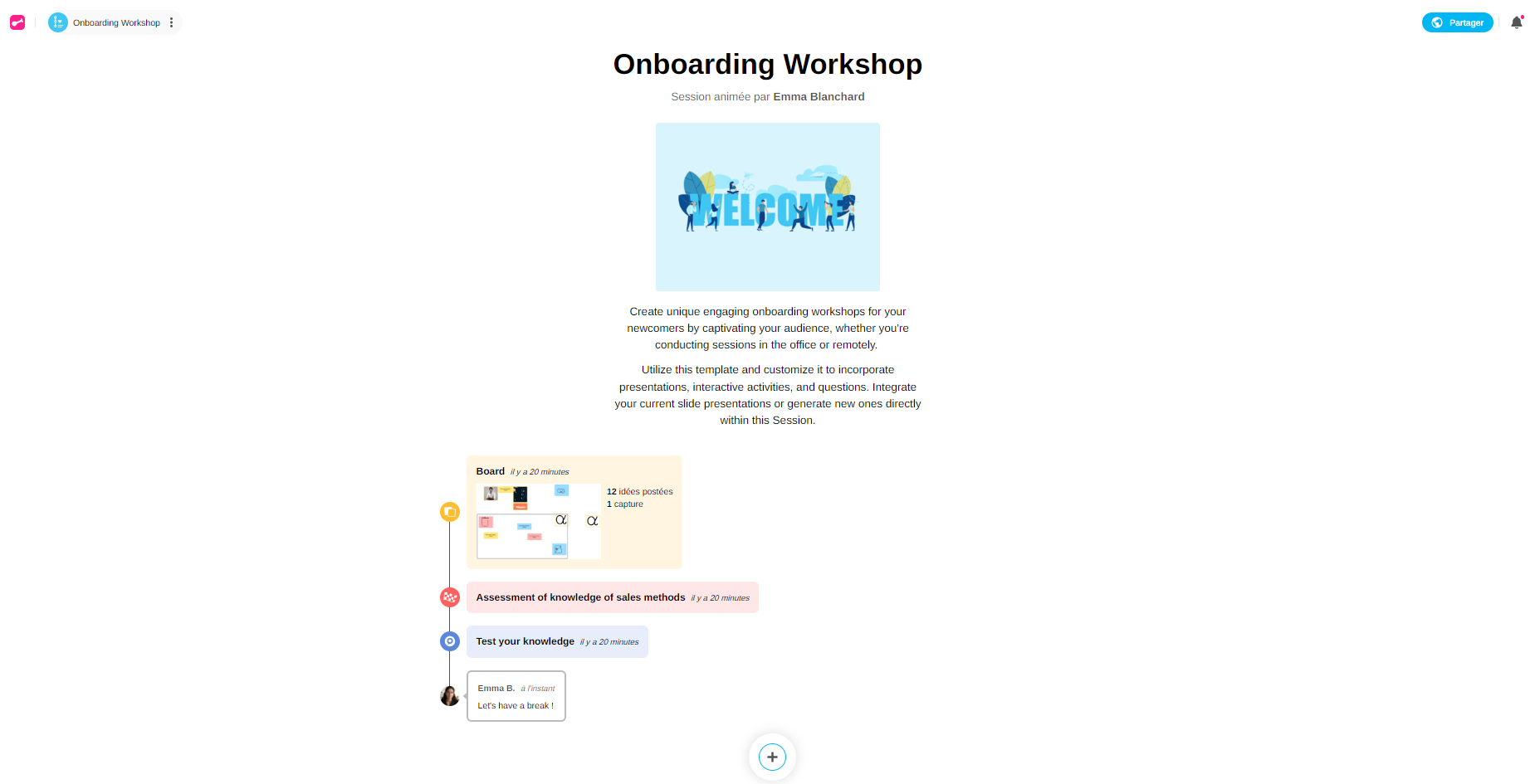 As soon as a participant joins your Klaxoon Session, they arrive on a home page designed to welcome and inform them. Here's a quick overview of what he discovers.
