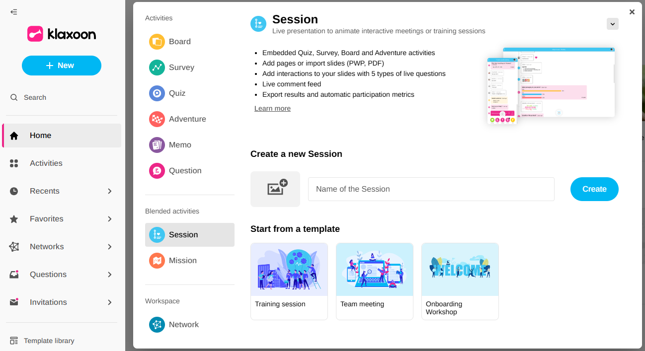 You can either create an Adventure from your Session configuration or integrate an Adventure that has already been created.