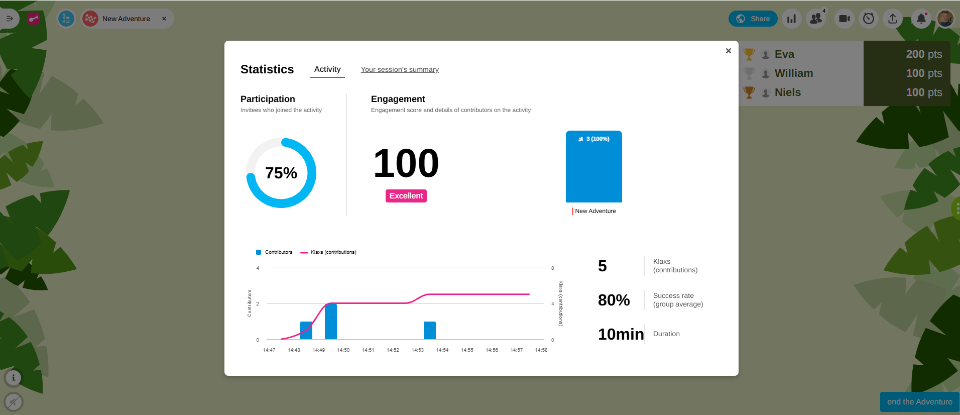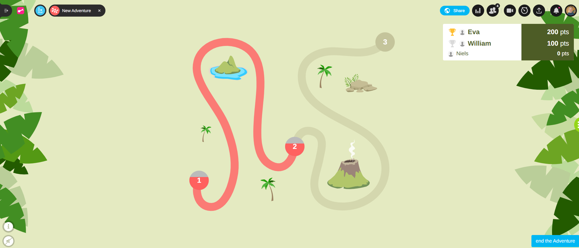 As an facilitator, you want to track the progress of participants in an Adventure you've created. To do so, you must first integrate your Adventure into a Session (Adding an Adventure to a Session unlocks the “host-controlled” mode).