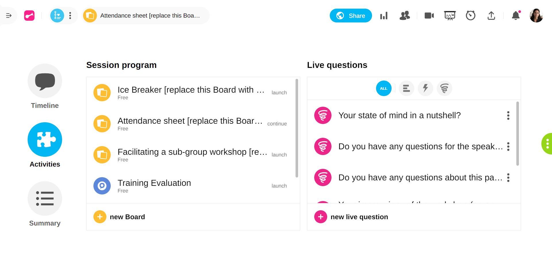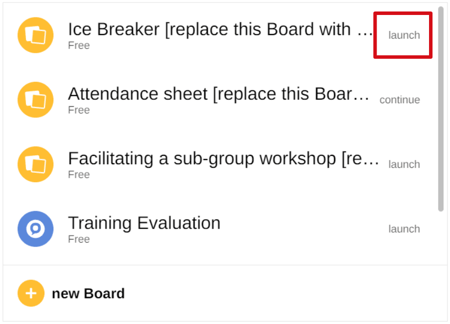 Using the Session dashboard, it is possible to create a Board without going back to edit menu and launch it immediately.