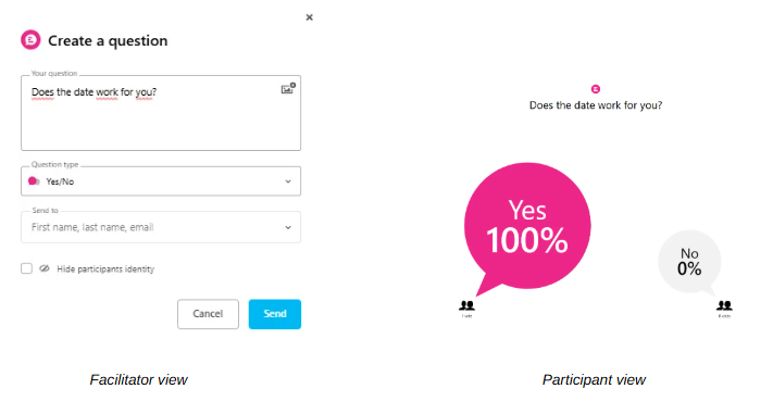 Need to make a decision quickly? Launch a Question in Yes/No mode to unlock a choice during the meeting (e.g. validate an action plan, choose a date, etc.).