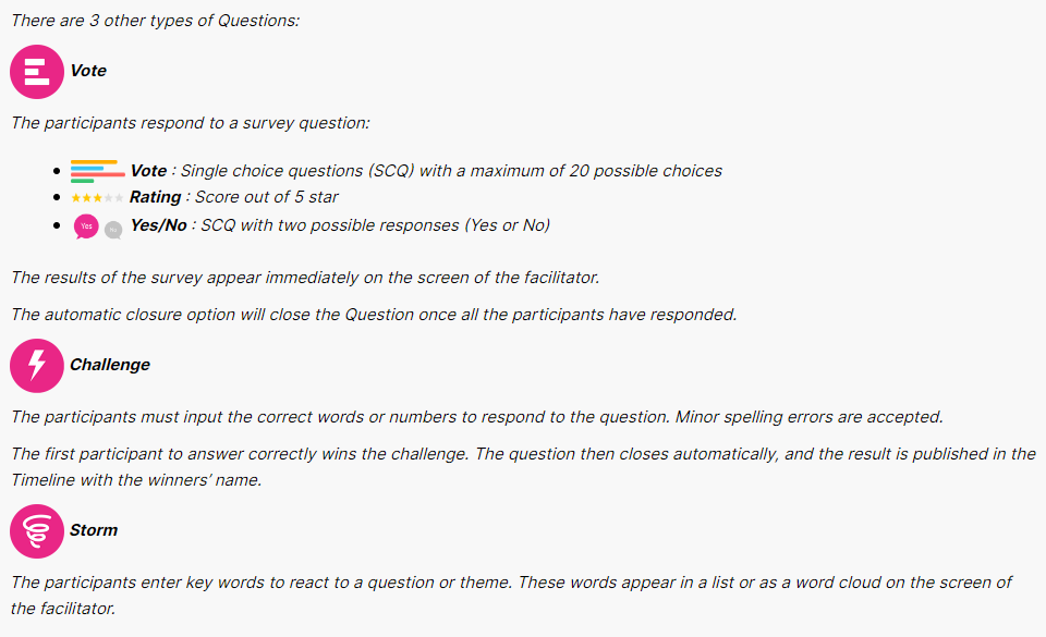 It is also possible to share the access code of the question once it has been launched.