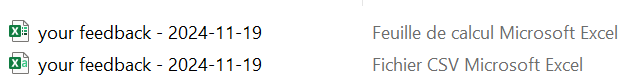 This export contains two files (.csv and .xls format) with the same name as your Question.