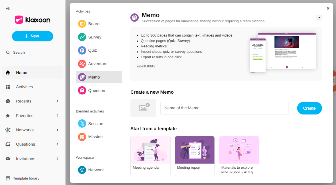 Your Memo is ready to be shared, click on LAUNCH and then select how you wish to broadcast the Activity.