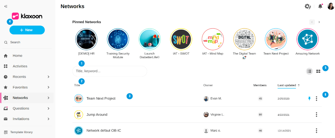 Click to display your Networks in list or grid view