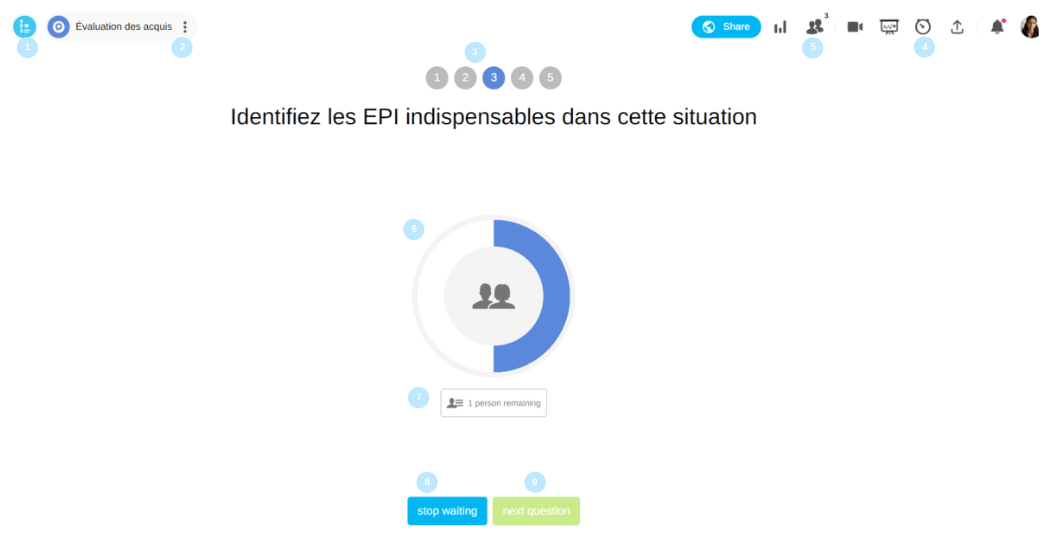 Click to make the next question available to the participants (the button is available once every participant has answered).