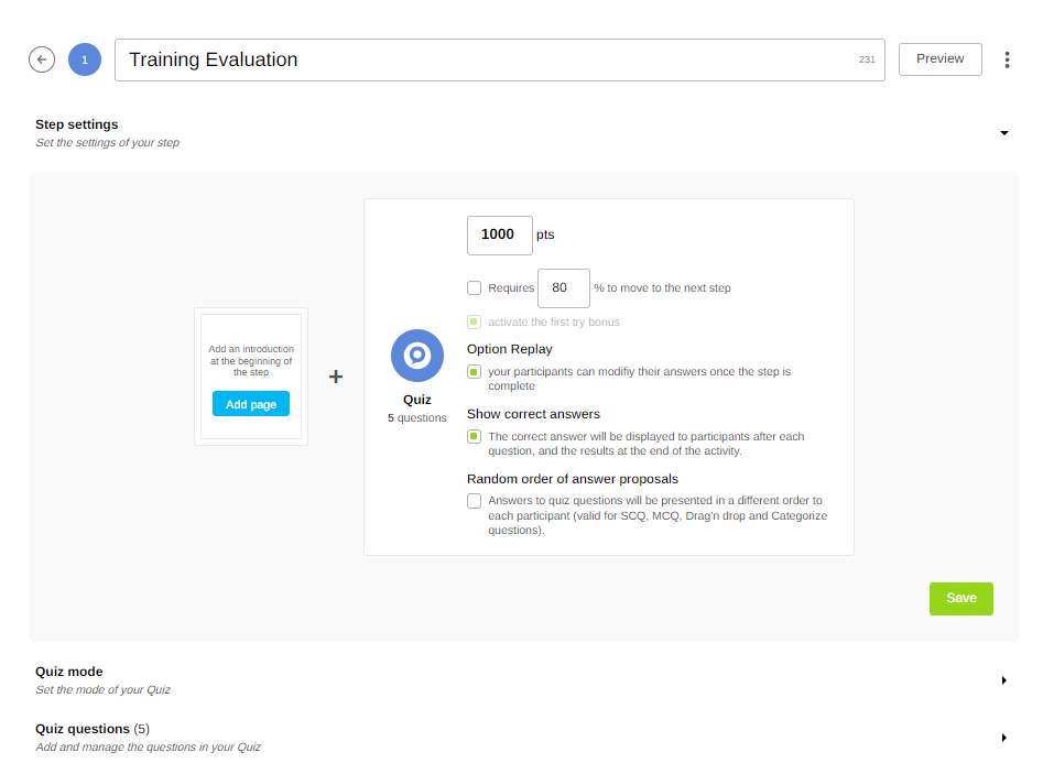 Add an activity. Here, a Quiz.