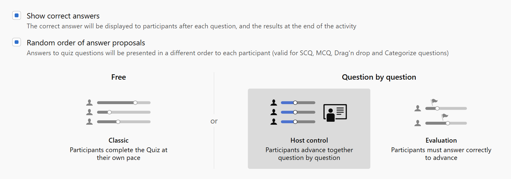 - Avoid distraction: Participants cannot navigate the Session independently. This prevents the faster ones from "spoiling" the rest and keeps the group's attention on the point you want to make