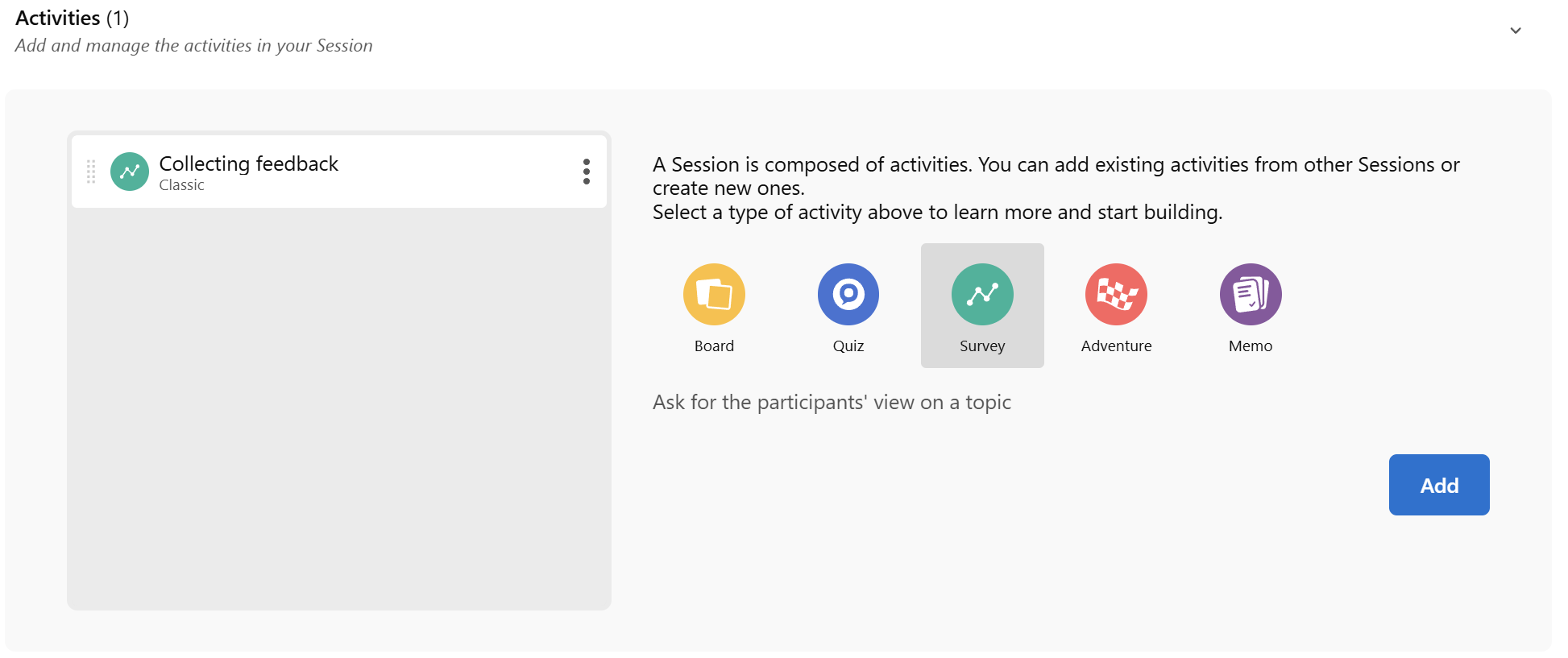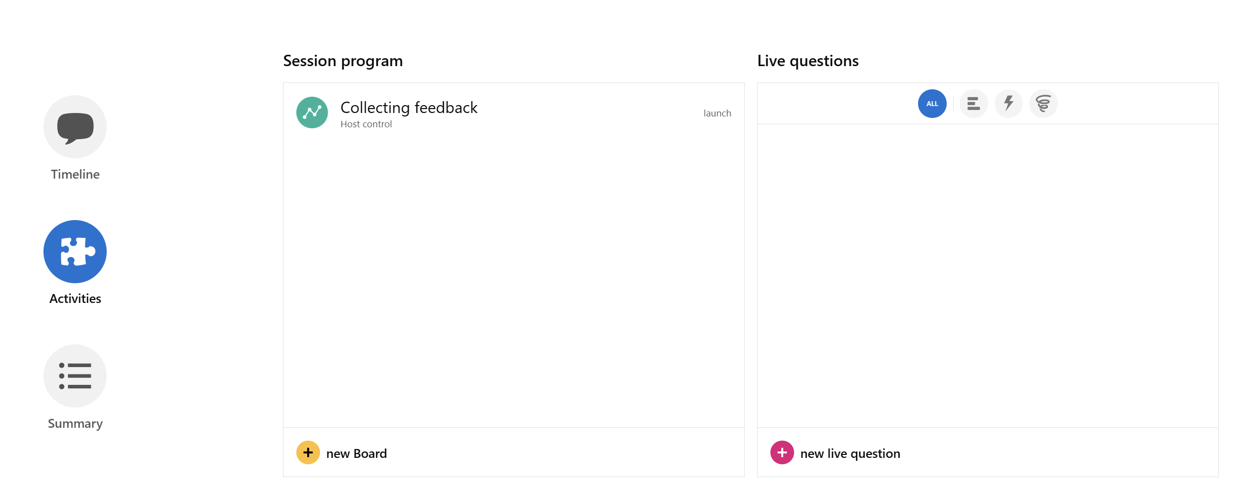 Host-controlled” mode (available only from within the Session) is a powerful Klaxoon feature that lets you control the pace of your activities. This means you can start and stop activities at will, giving you more control over the flow of your Session.