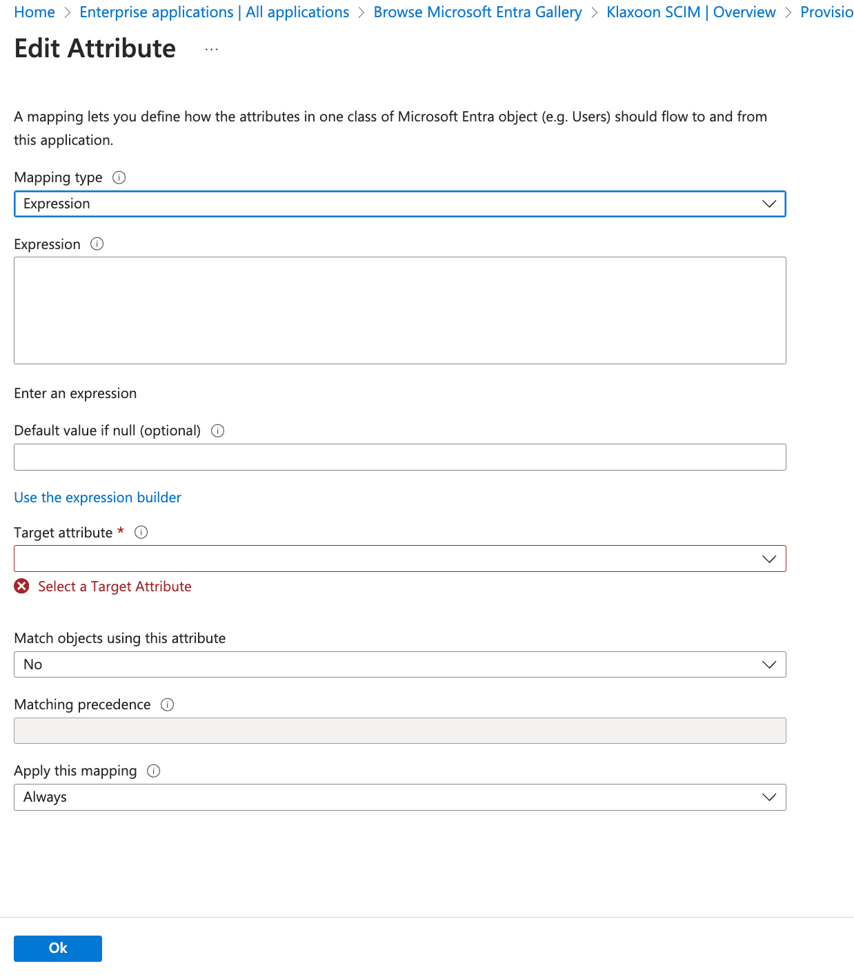 Éditez l'attribut, sélectionnez "Expression" dans "Mapping type".