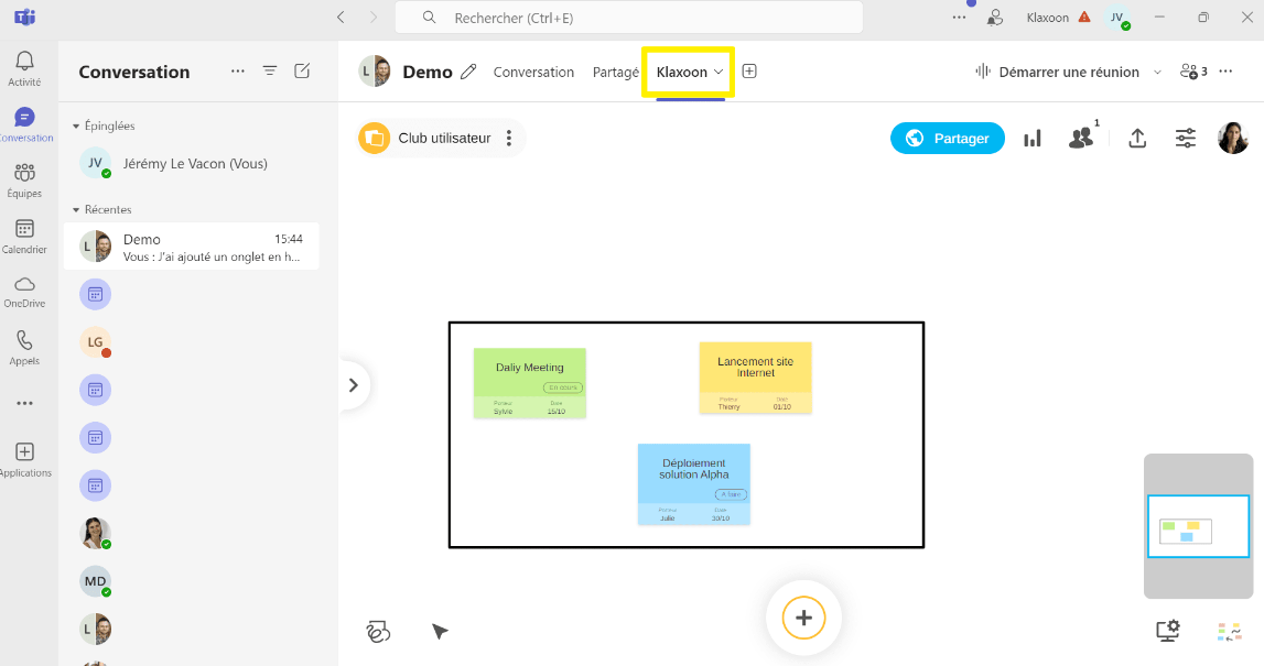 Pour ajouter Klaxoon à une conversation depuis Microsoft Teams, il vous suffira de suivre les étapes suivantes :
