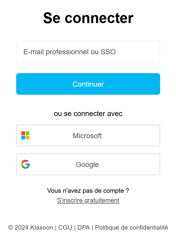 - Gain de temps dans la saisie des mots de passe et simplification de l'accès à Klaxoon (le SSO permet de reconnaître l'utilisateur s'il se connecte plusieurs fois dans la même journée)