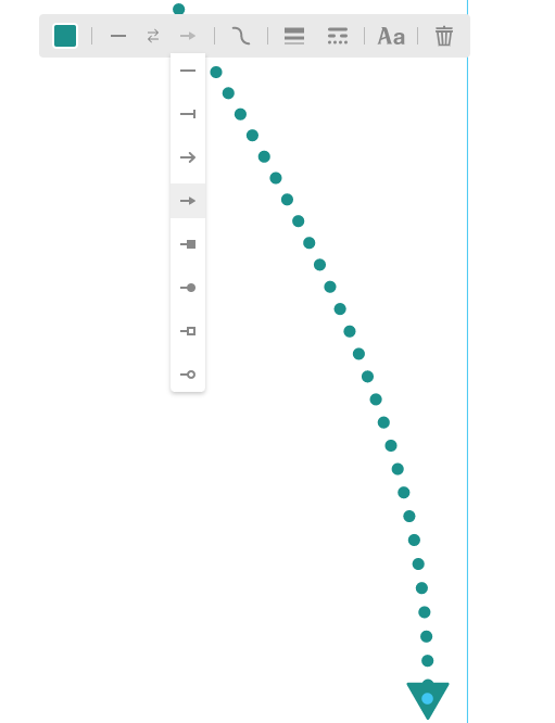 Ce connecteur permet de relier deux objets avec des angles droits, pour des designs plus précis. Vous pouvez ajuster le chemin parcouru par le connecteur en cliquant dessus, puis sur les points bleus qui apparaissent. Double-cliquer sur ces points permet de revenir à la position initiale du connecteur.