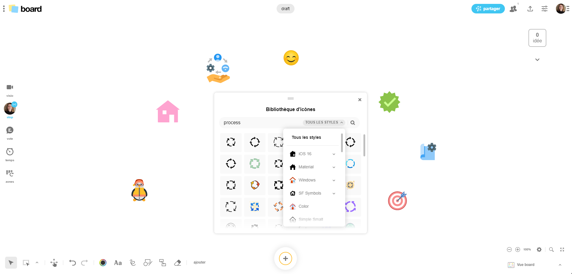 Explorez la nouvelle bibliothèque d'icônes de Board et utilisez les visuels à votre disposition pour illustrer vos idées en quelques secondes.