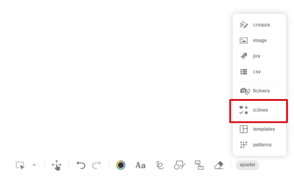Depuis le Board, cliquez sur "ajouter" dans la barre d'outils puis "icônes".